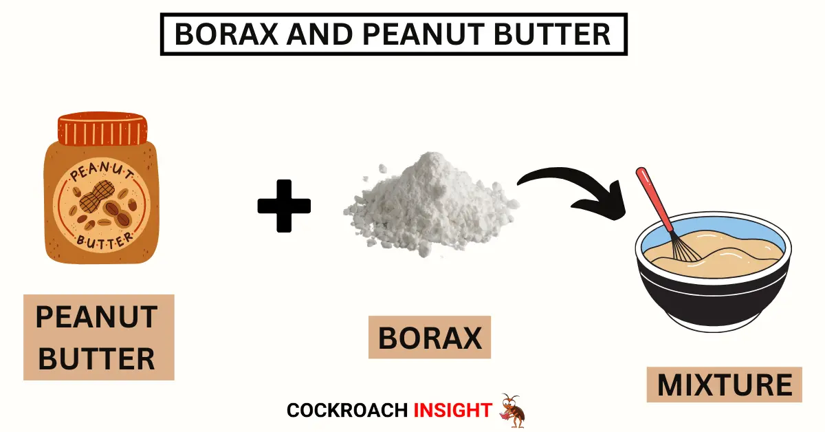 The strong scent of peanut butter is what makes it a good bait for roaches. Take a small amount of borax, mix it with peanut butter and you have a sticky mix. Apply this mixture to small pieces of cardboard or bottle caps that are put into locations roaches frequently occupy.