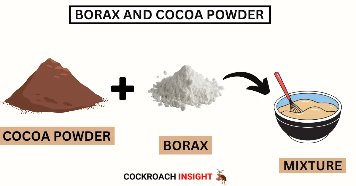 You may also combine borax with cocoa powder. Borax is masked in the strong scent of cocoa, trapping roaches to eat the mixture. A roach mix is made by mixing one part borax with one part cocoa powder and sprinkling in known roach paths or near entry points.